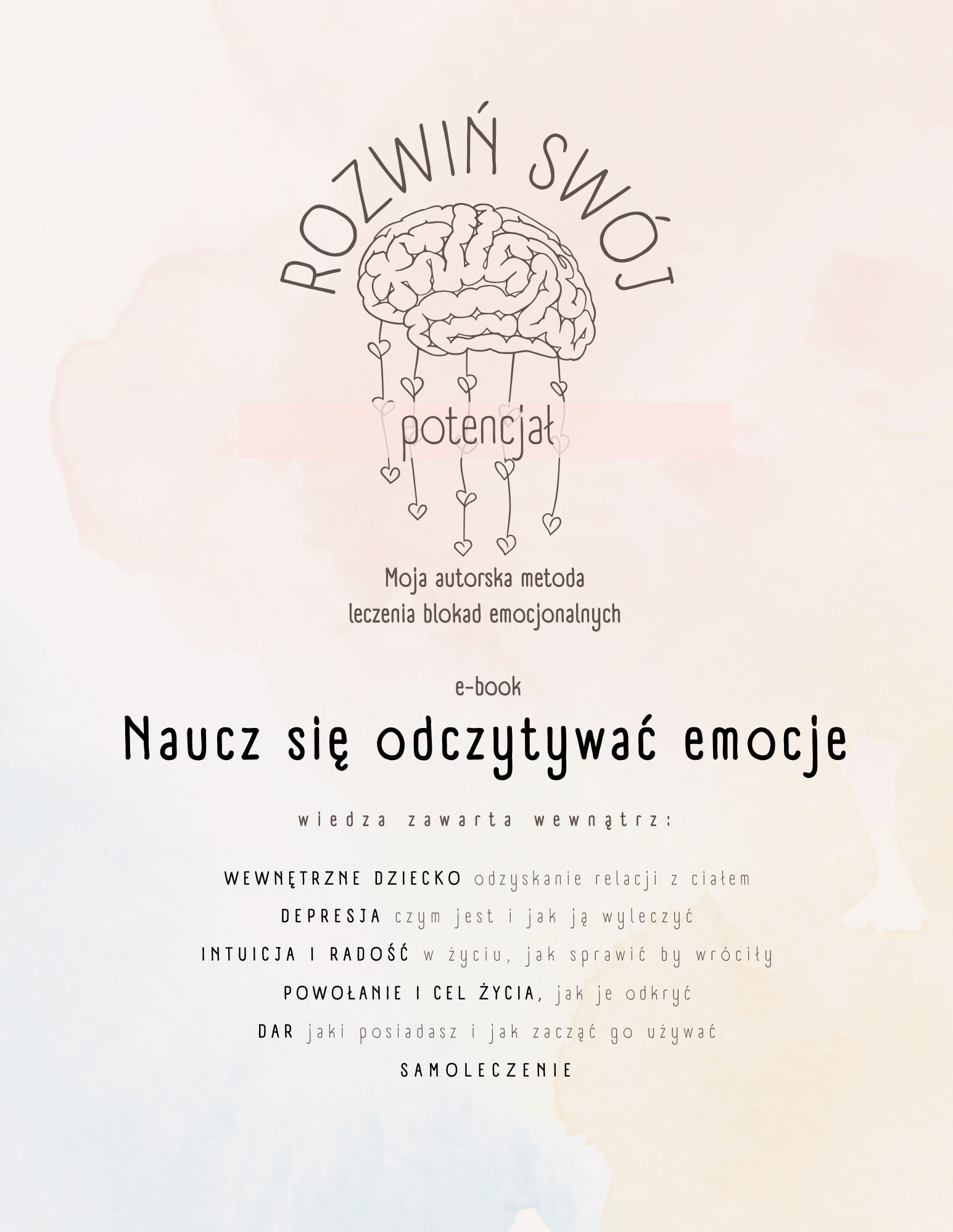 Znajdziesz tu moją autorską metodę leczenia ran emocjonalnych – sprawdzoną i w 100% skuteczną technikę, która uzdrawia pole energetyczne i pozwala uwolnić się od ciężaru przeszłości. Dzięki tej metodzie zrozumiesz, jak Twoje emocjonalne blokady wpływają na każdą sferę życia, i jak, poprzez pracę z ciałem, możesz je skutecznie rozpuścić.